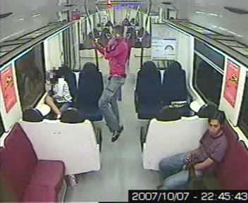 En las imágenes de la agresión grabadas por las cámaras de seguridad de los Ferrocarrils de la Generalitat de Catalunya se ve cómo en el vagón únicamente viajan el agresor, la víctima y una tercera persona, que en ningún momento mira hacia el lugar donde se produce la agresión y que tampoco interviene para evitarla.