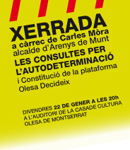 El proper Divendres 22 de Gener, a les 20h i a l’auditori de la casa de cultura, s’ha preparat una trobada per reflexionar sobre el dret a decidir, les consultes i el paper d’Olesa en tot aquest entramat.